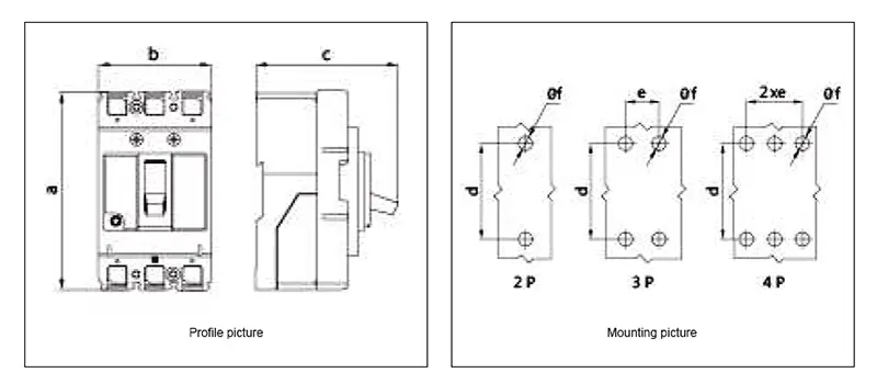 Disyuntores de caja moldeada Vista lateral
